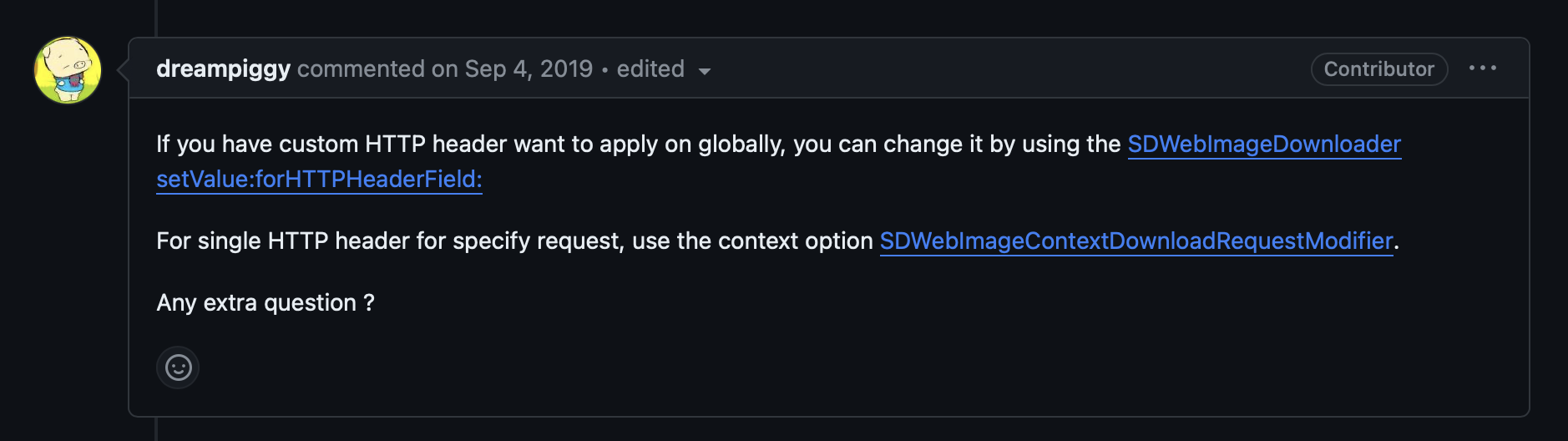SDWebImage 공식 문서를 찾아보니 SDWebImageDownloaderRequestModifier 를 통해서 요청을 변경할 수 있다.