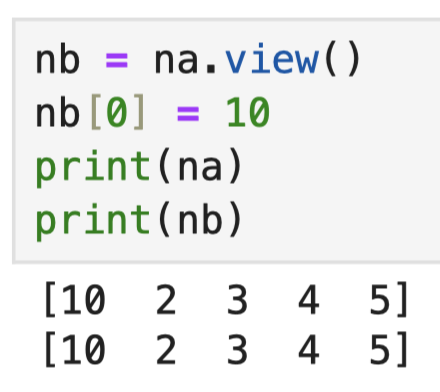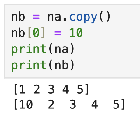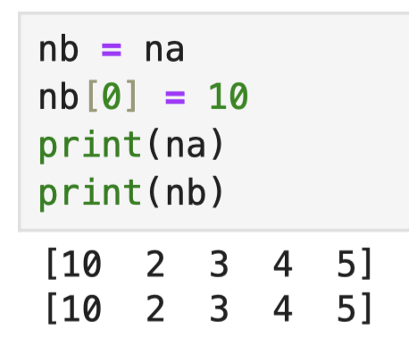 일반적인 복사(대입) 형태를 ndarray na = [1,2,3,4,5]를 nb로 복사하는 형태는 nb = na 이다.
